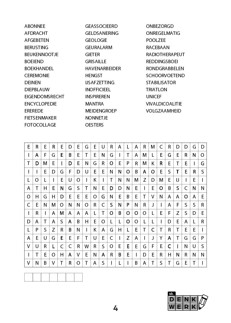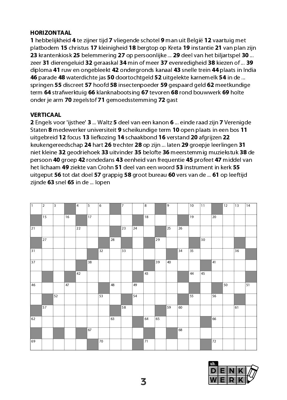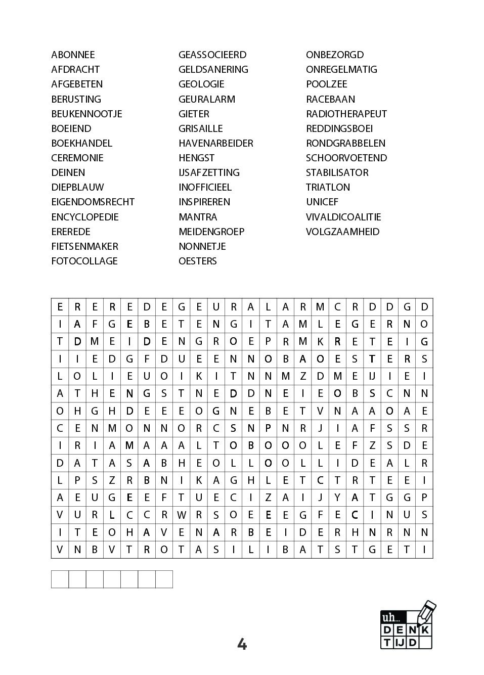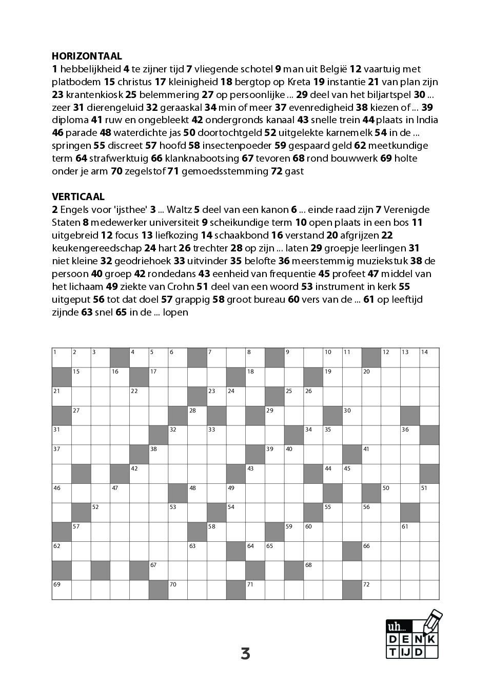 Bij Denktijd en Denkwerk draait alles om inhoud. Mooie, volwaardige woorden. Geen overbodige afkortingen, geen geforceerde invullingen, geen rommelige rasters. Iedere puzzel is technisch doordacht samengesteld, met aandacht voor leesbaarheid, balans en speelplezier.